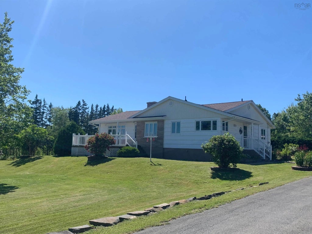 Welcome to 72 Harbourview Crescent in the village of Louisdale, Cape Breton. Located on a quiet side street, this home sits on a large manicured lot of mature trees and shrubs, and features a picturesque view of Seal Cove. The sunny kitchen boasts Corian countertops and a lovely corner window design with views of the harbour and property. The centerpiece of the living room is the broad hearth wood burning fireplace; a charming and cozy addition to gatherings, special occasions, or just a quiet night at home. The basement holds a large rec room, very spacious laundry room, a generous utility room with work bench, and a formidable storage space with built in shelving. Clutter will be a thing of the past in this house. So much handy storage both upstairs and down. Outside there are two powered garages; the main garage is insulated with gyprock walls, has a chimney for a furnace, and is generator wired to run power to the house during outages. 15 min to all amenities in Port Hawkesbury. 10 min to the Bras D'Or Lakes, marina, and golf course in Dundee. Don't miss the opportunity to make this beautiful property your own. Over 2 acres of grass and trees where visiting deer are a regular occurrence. This is where you want to live.