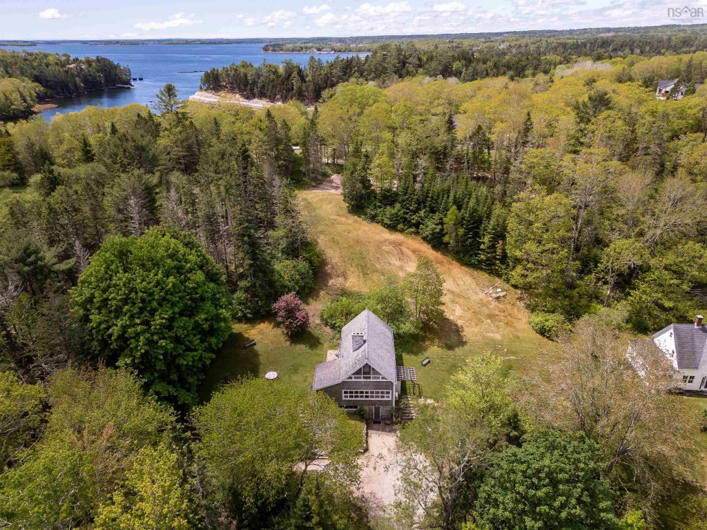 The unique and contemporary Chester Basin hideaway that you have been searching for is found here, just minutes away from the Village of Chester! With 75 feet of shared waterfront, your ocean access is a short stroll away on Lot 23-1 Latimer Lane–Boaters will enjoy the private water access from the Middle River estuary that flows to the sparkling ocean waters of Mahone Bay. A laneway guides you from the main road to an opening surrounded by trees, past a charming farmhouse and gardens before arriving at The Studio. Large granite steps lead you to the main entrance of the home. Inside, the flagstone floors, towering windows with high vaulted ceilings, and exposed barn board walls all tie together to create a warm and tranquil setting centered around a grand wood burning fireplace. Past the living area is a raised and open dining room and kitchen. Modern finishes are on display in the newly renovated kitchen, featuring a double wall oven, glass cooktop and new cupboards and counters. The kitchen has access to a sunny and private flagstone patio behind the house where you can sip your morning coffee and soak up the sun. The elevated dining nook is complemented by a window wall with views of the forest, and a ductless heat pump for controlled cooling/heating. The spiral stairs lead to the Primary loft that has a vaulted ceiling, convenient half bath and a large gable window looking outdoors as well as an indoor window to view the great room below. The second loft is perfect for overflow guests and family. Also open to below, this loft holds three built-in beds and has the potential to be made into two bedrooms. The lower level is a functional and versatile room with durable and low maintenance tile floors, a bathroom, and a ground floor exit to easily access the driveway. Located a stone's throw from the Chester Basin Pharmasave, Post Office, and restaurant, also enjoying easy access to Highway 103 for an hour drive to Halifax and the International Airport.