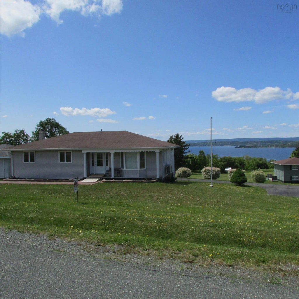 LOOKING FOR A GREAT NEIGHBORHOOD WITH STUNNING VIEWS?? Take a look at this wonderful property with breath taking views of the Bras D Or lake. Home features open concept renovated kitchen , dinning room and living room area . Check out the large primary bedroom room and 2nd bedroom plus recently renovated bathroom on the main level . Basement is complete with another large bedroom , large open rec room plus additional room presently used as a office ,updated bathroom and laundry room. Enjoy the wood burning stove in the basement on those cold frosty winter nights. This beautiful property has a lush green landscaped yard 2 paved driveways and a heated 22 x 22 double garage plus shed . Home is Wired in for a generator..
