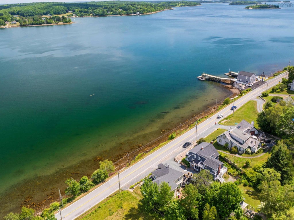 This gorgeous seaside home sits just on the edge of the highly desirable and picturesque Town of Mahone Bay. A short stroll or bike ride brings you to the town’s charming shops, restaurants, galleries, and more. Inside, the home blends timeless character with thoughtful modern updates. The open-concept main level features a wall of windows spanning the front of the house, offering breathtaking, panoramic views of beautiful Mahone Bay from nearly every room. The spacious living area is warmed by an airtight wood stove—perfect for cozy evenings—and flows seamlessly into a dining area and a stunning custom kitchen. With plenty of storage, a center island, and high-end appliances, the kitchen is a chef’s dream. Also on the main level is a large den (also ideal as a main-floor bedroom), a laundry nook, and a full bathroom. Upstairs, a generous landing—perfect for a home office—leads to three bright bedrooms, a full bath, and an ensuite off the primary bedroom suite. There’s also a walk-up attic, offering future potential for great storage. Notable additional features include a beautiful oak staircase, wide-plank wood floors, high ceilings, vinyl double-paned windows, a roof replaced approximately 10 years ago, and ductless heat pumps on both levels for efficient heating and cooling. Recent insulation upgrades make the home especially energy efficient. Outdoors, enjoy the covered side porch where you can relax and watch the boats drift by and take in spectacular sunsets over Mahone Bay’s iconic churches. The fenced-in backyard garden creates a private oasis for lounging and entertaining. Across the road, stairs lead to direct ocean access to drop kayaks or other water toys. This home truly has it all: an unbeatable location, stunning ocean views, private water access, and all the renovation work already done. Just moor your boat and enjoy the summer! Drone video and floor plans available.